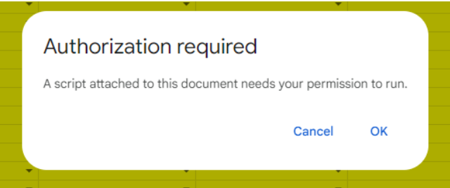 Note: Spreadsheets operate based on scripts, which require special permissions.