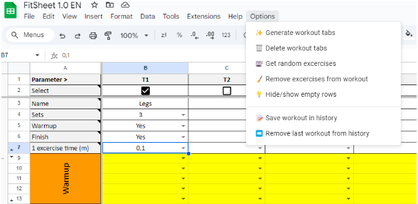 Okay, you have the FitSheet training spreadsheet open — now it’s time to get to the heart of it, which is planning the workout. It’s like putting together a puzzle, but instead of a landscape view, you’re creating your own plan for a great shape! You don’t have to be a fitness master to do this well — FitSheet is intuitive enough to guide you step by step.